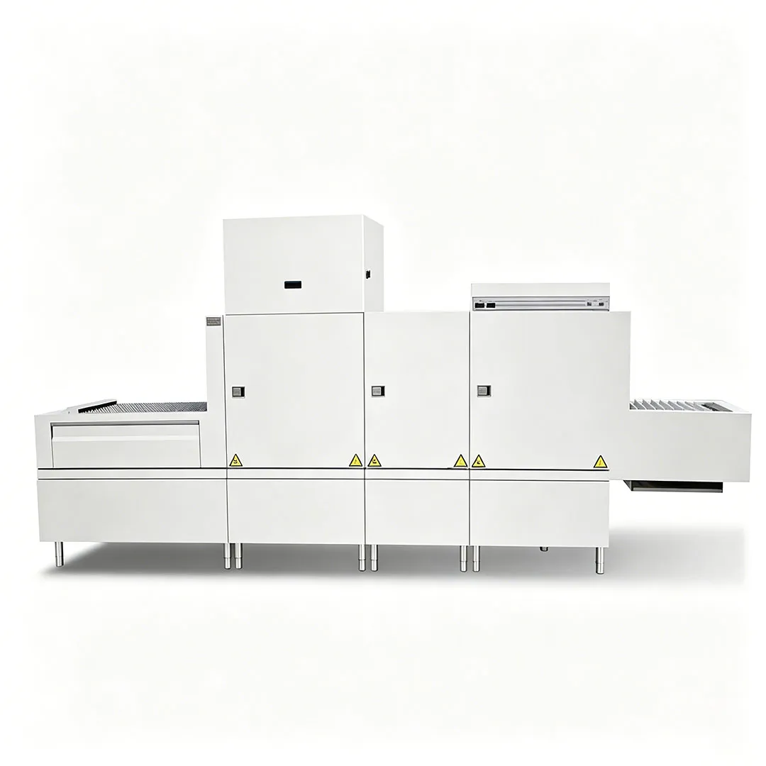 เครื่องล้างจานแบบสายพานลำเลียงยาวเกรดเชิงพาณิชย์สำหรับการล้างจานจำนวนมากเป็นอุปกรณ์เชิงพาณิชย์ประสิทธิภาพสูงที่พัฒนาขึ้นโดยเฉพาะสำหรับการทำความสะอาดจานต่อเนื่องในปริมาณมากในสภาพแวดล้อมเชิงพาณิชย์ที่มีผู้คนพลุกพล่าน เครื่องล้างจานแบบสายพานลำเลียงยาวนี้ต่างจากเครื่องล้างจานขนาดเล็กทั่วไป โดดเด่นด้วยการออกแบบสายพานลำเลียงแบบขยายที่ช่วยให้ป้อน ทำความสะอาด และถ่ายออกได้อย่างต่อเนื่อง ทำให้เหมาะสำหรับสถานการณ์ที่ต้องล้างจานจำนวนมาก โดยผสานรวมการทำความสะอาดแบบมืออาชีพ การล้างด้วยอุณหภูมิสูง และการอบแห้งที่มีประสิทธิภาพ แทนที่การใช้แรงคนอย่างมีประสิทธิภาพ ปรับปรุงประสิทธิภาพการทำความสะอาด และรับรองว่าจานชามทุกชิ้นตรงตามมาตรฐานสุขอนามัยอาหารที่เข้มงวด เครื่องล้างจานแบบสายพานลำเลียงยาวเชิงพาณิชย์ได้รับการออกแบบมาเพื่อจัดการกับจานชามจำนวนมากได้อย่างรวดเร็วและสม่ำเสมอ กลายเป็นอุปกรณ์หลักสำหรับธุรกิจที่แสวงหาประสิทธิภาพการดำเนินงานและความปลอดภัยด้านสุขอนามัยในการแปรรูปจานจำนวนมาก